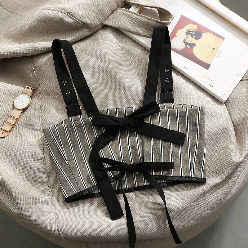 Korean version of the halter vest female wearing a short bottom with chest top shoulder stripe bandage design sense of a minority to take inside