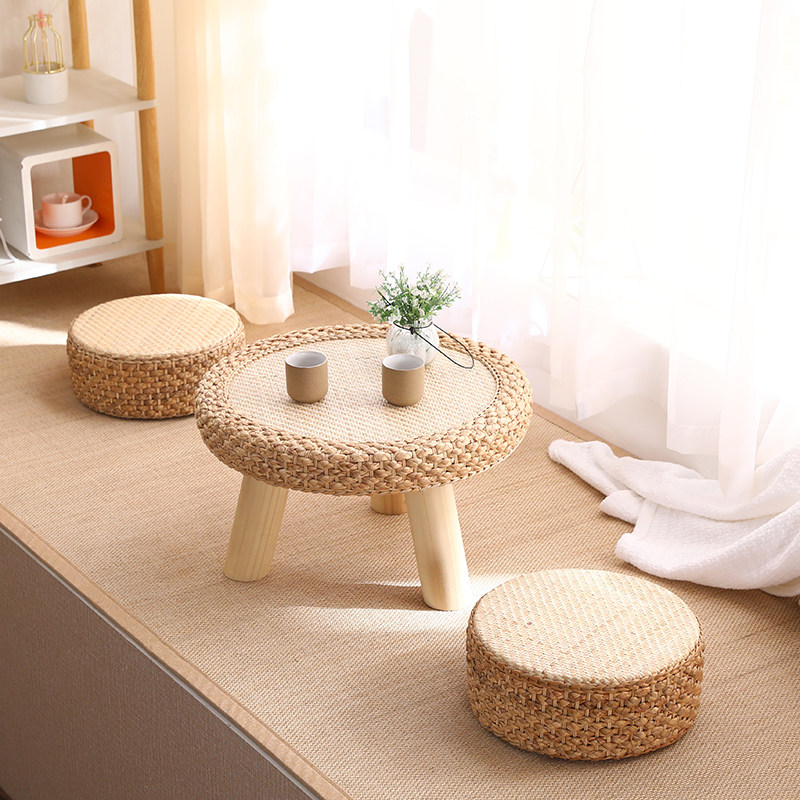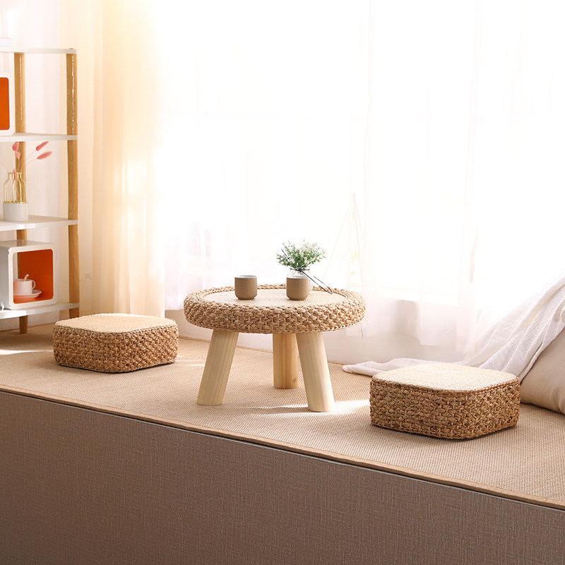 Solid wood rattan woven bay window table small tea table low table tatami table bed and breakfast small table Kang table window sill small tea table stool