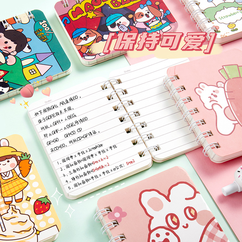 Pocket coil this rollover small notebook portable convenient mini diary small simple ins Korean version of small fresh primary school students with cute cartoon notepad postgraduate entrance examination word record notebook