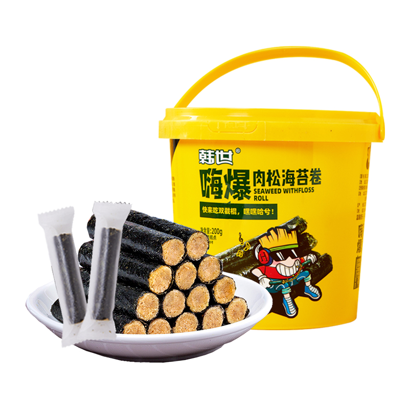 Han Shihe Fried meat floss seaweed roll 200g barrel sandwich crispy seaweed egg roll Baby children's net red snack