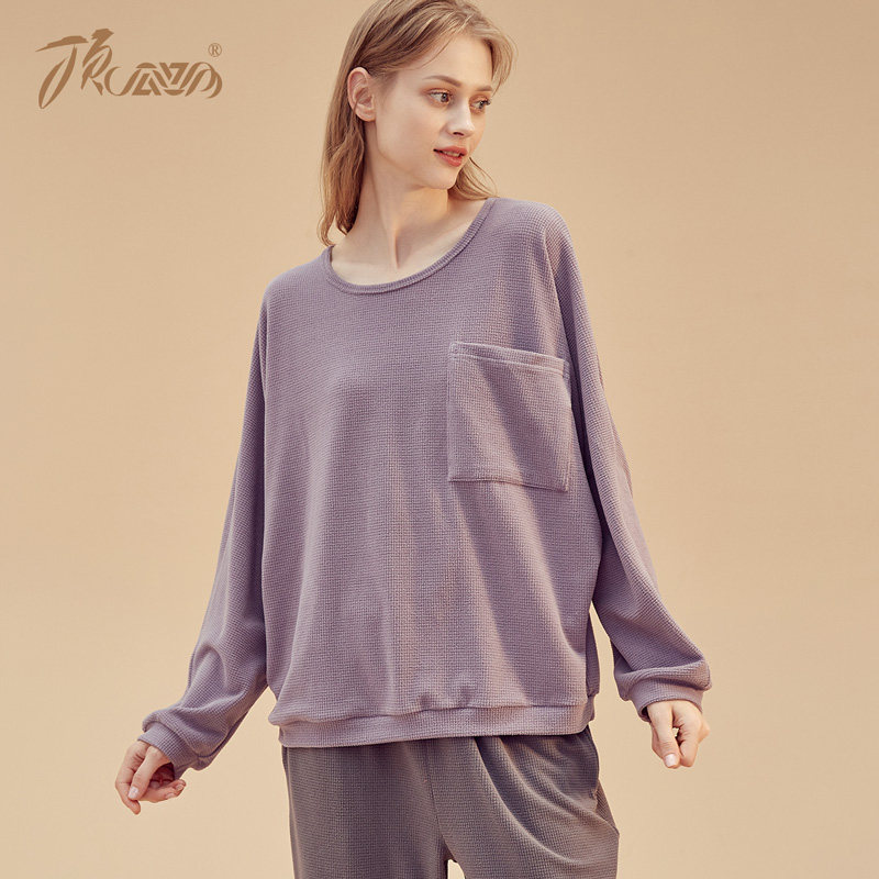 The nightgown autumn and winter thin - velvet home suit outside wearing sports and leisure and relaxing home clothing to the cucumber