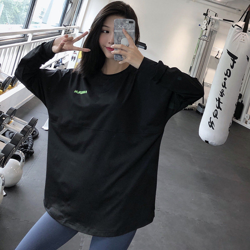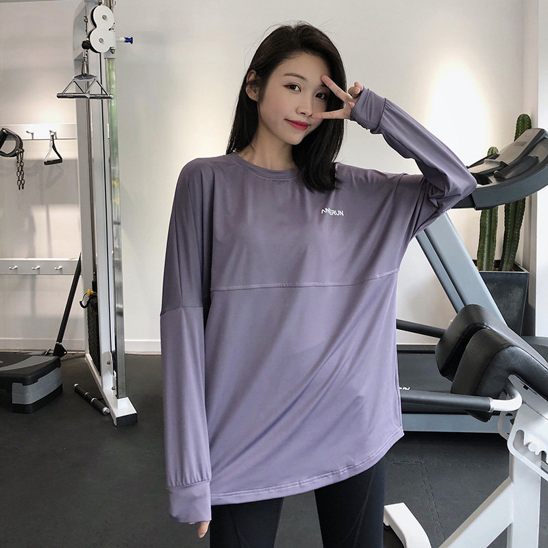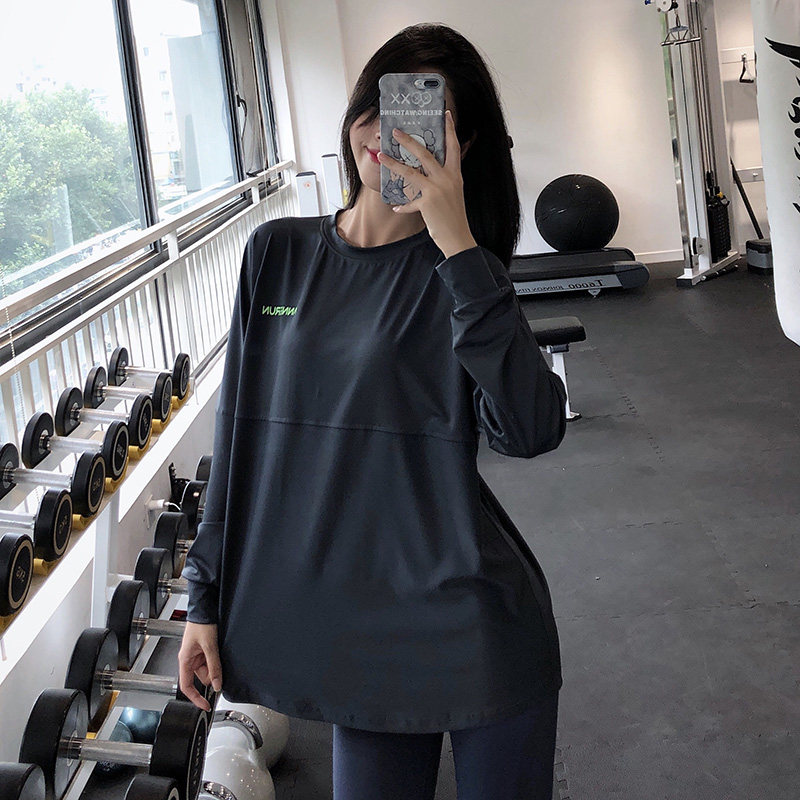 annerun fitness clothes women's loose running blouse quick-drying clothes Gym sports T-shirt net red long-sleeved yoga suit