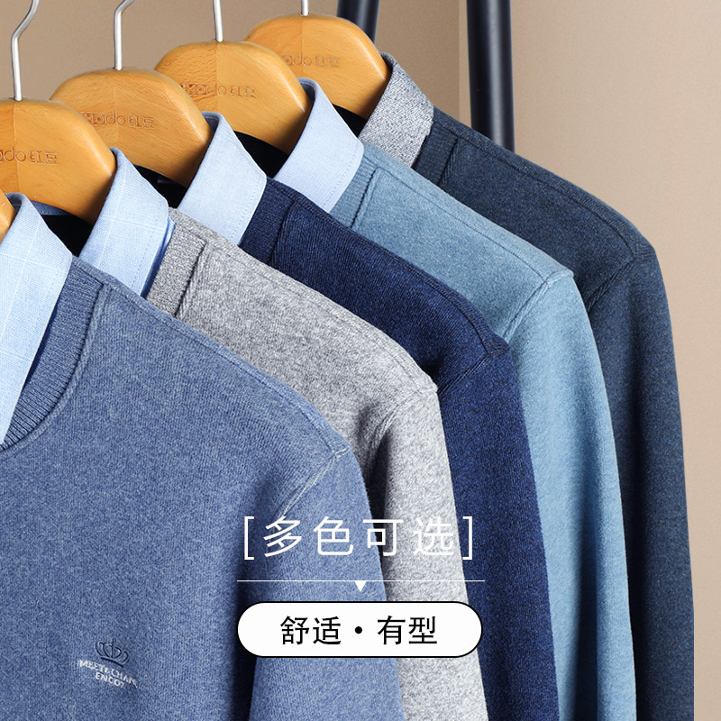 Red bean plus velvet false two sweaters men's thick shirt collar sweater autumn winter dad wool feeling sweater warm clothes
