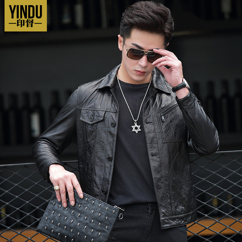 Spring and Autumn Haining Short Painting Sheep Leather Fur Clothes Men to Lead Renaissance Fashion Thin Pen Jacket