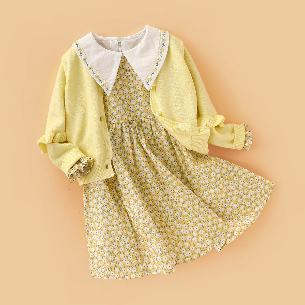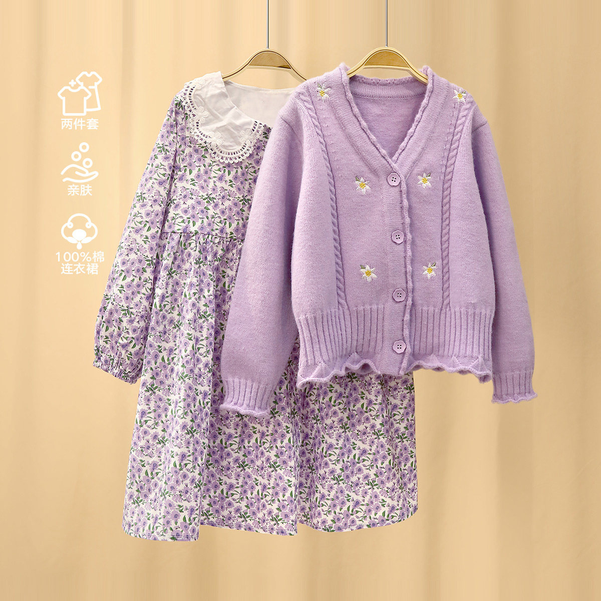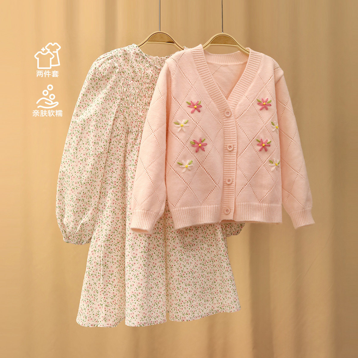 Small Tiger Patti Girl Suit two pieces of Shreddy Floral Dress Trendy 2022 Spring Dress Foreign Pie sweater suit