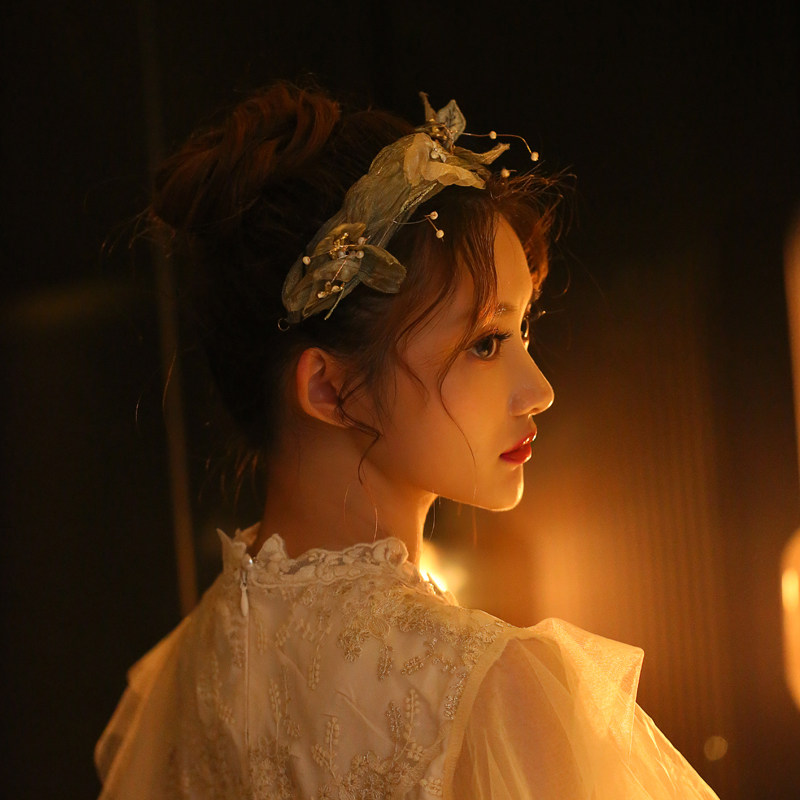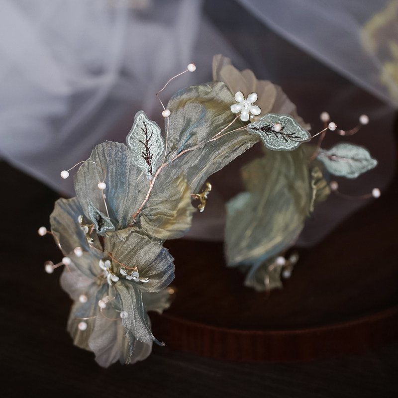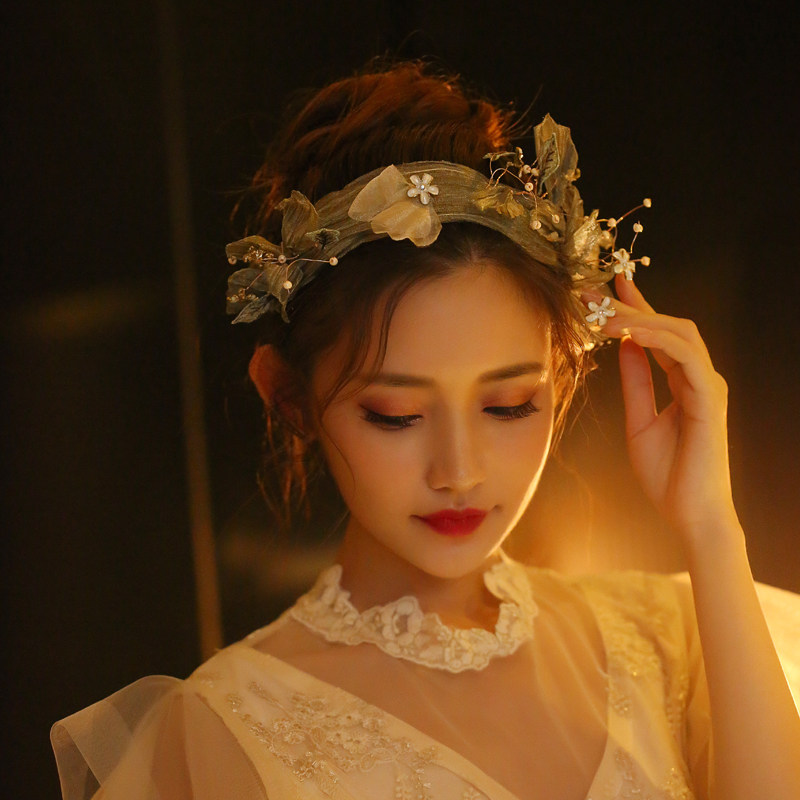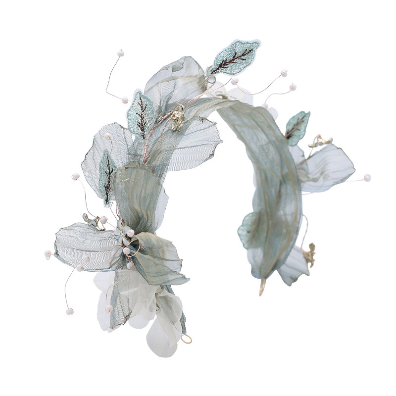 Bride headdress Elf flower fairy Retro silk yarn beautiful hair band Super Fairy Sen department dark green handmade head flower hair band