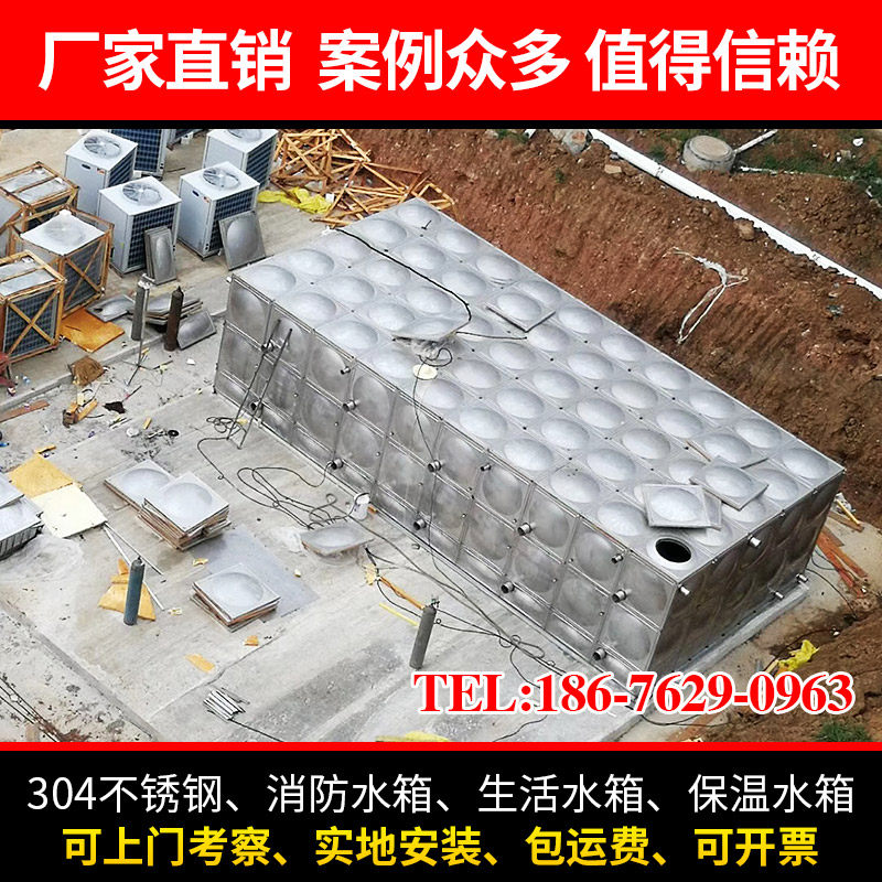 304 stainless steel living water tank customized 50 tons square fire pool combined buried bucket door-to-door installation
