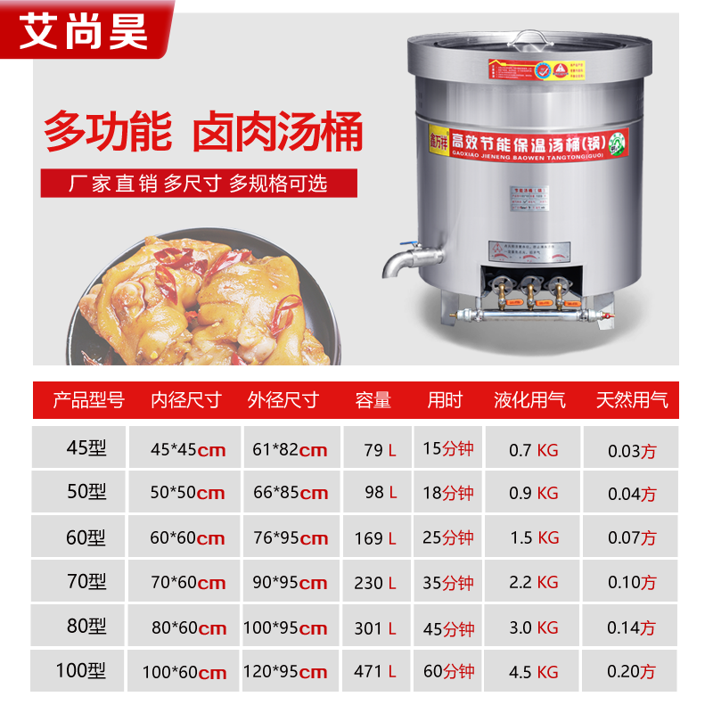 Stainless steel gas energy-saving soup bucket boiled beef and mutton soup pot brine meat pot commercial insulation pot soup large capacity broth pot
