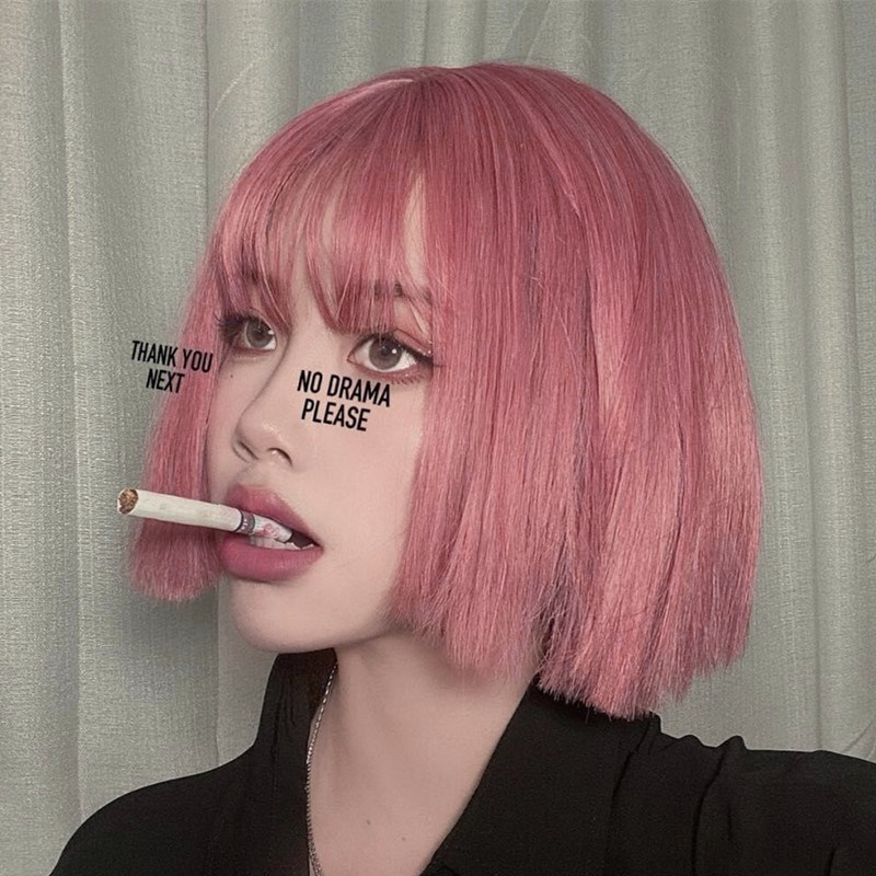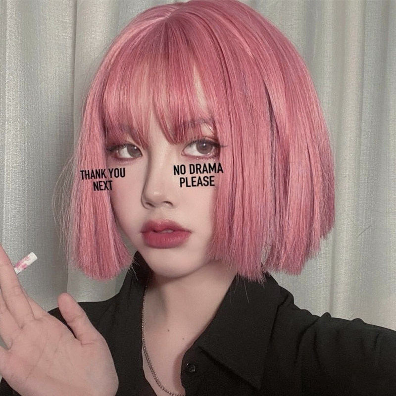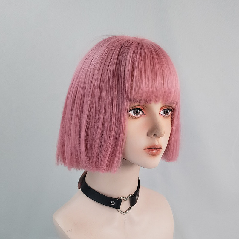 Dancing water wig female short hair net red street shot Lolita pink lolita fluffy bobo short straight hair new style hair set
