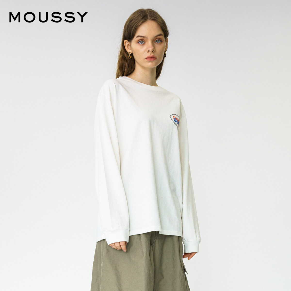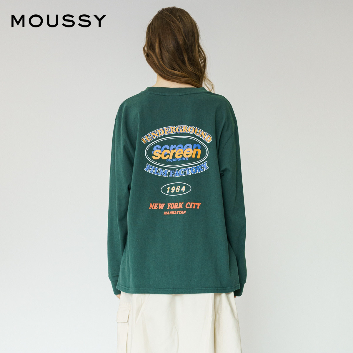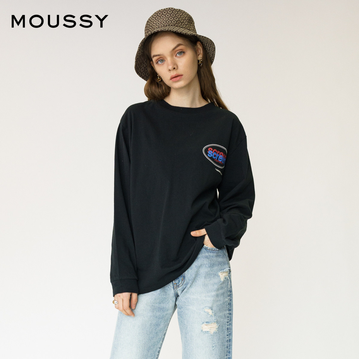 (THE SAME AS THE star)MOUSSY SPRING AND autumn round neck LETTER PRINTING thread T-shirt 010DAQ90-5730
