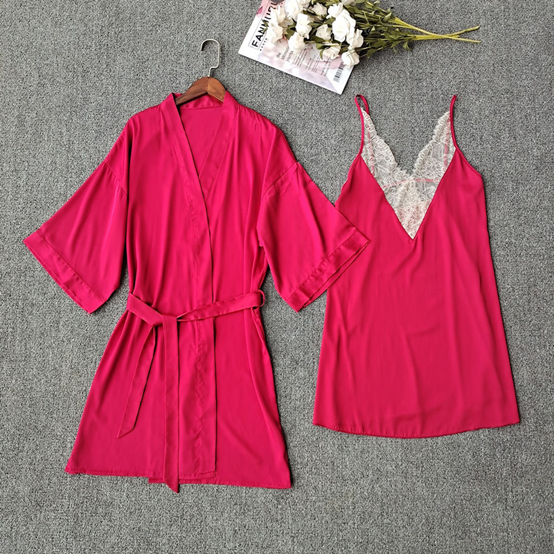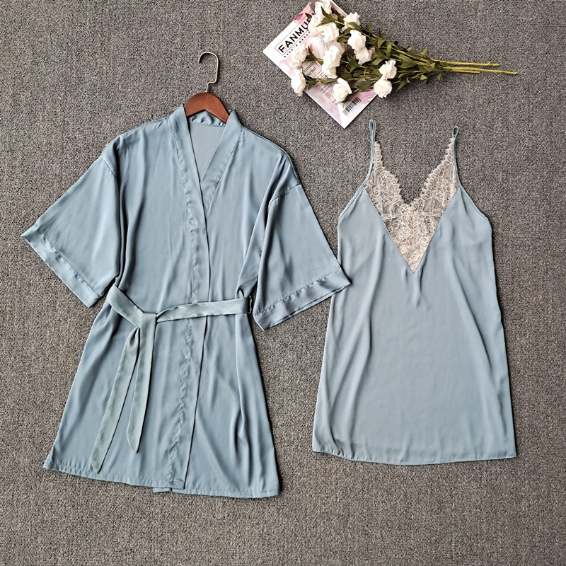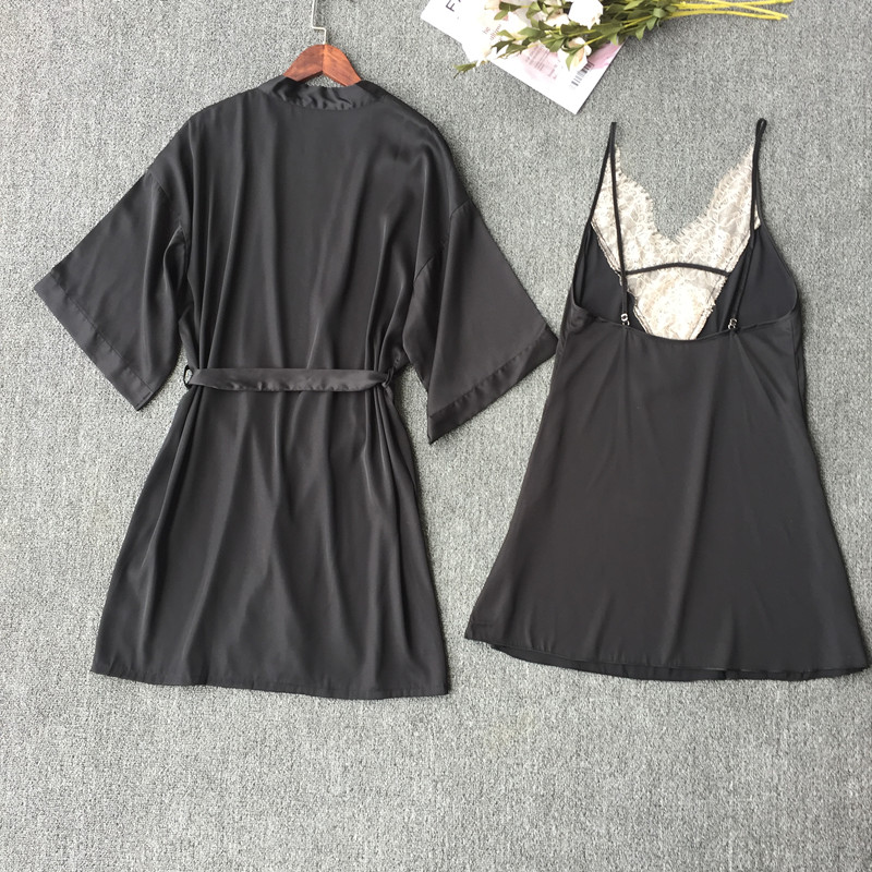 Sexy pajamas Xia Bingsi thin suspender skirt bathrobe air conditioning solid color can be worn outside short-sleeved two-piece suit home clothes