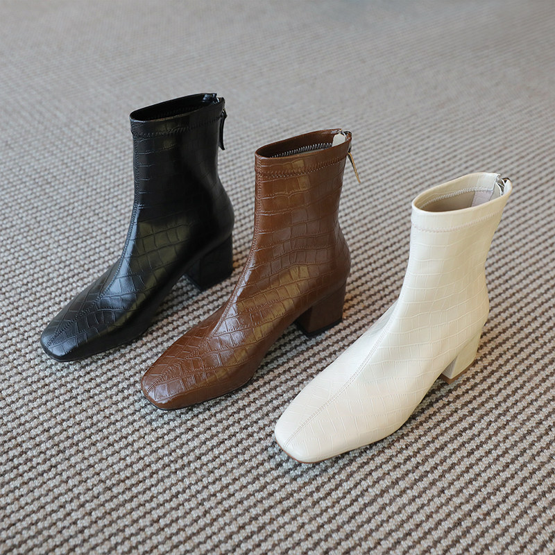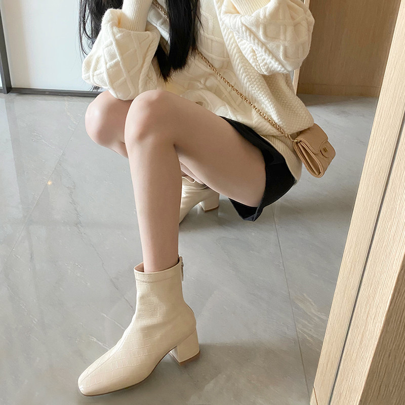 Ins strongly recommends self-retention 2021 new style ~ creamy white thick heel British Martin boots mid-heel short boots and ankle boots for women