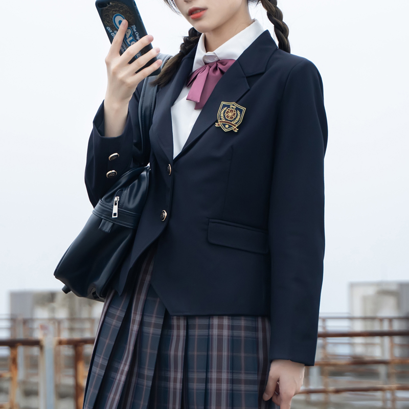 Chestnut honey JK jacket suit women's black spring and autumn suit Long sleeve badge uniform student top design sense niche