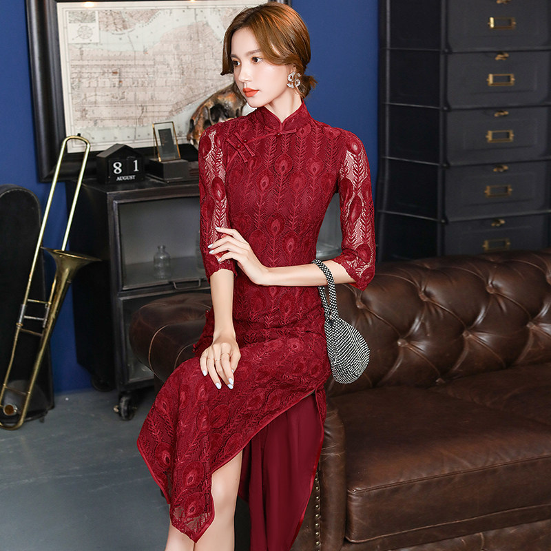 Red qipao 2022 New toast to bridal gown wedding gown woman Long sleeves Improved Chinese Wind Dress Spring