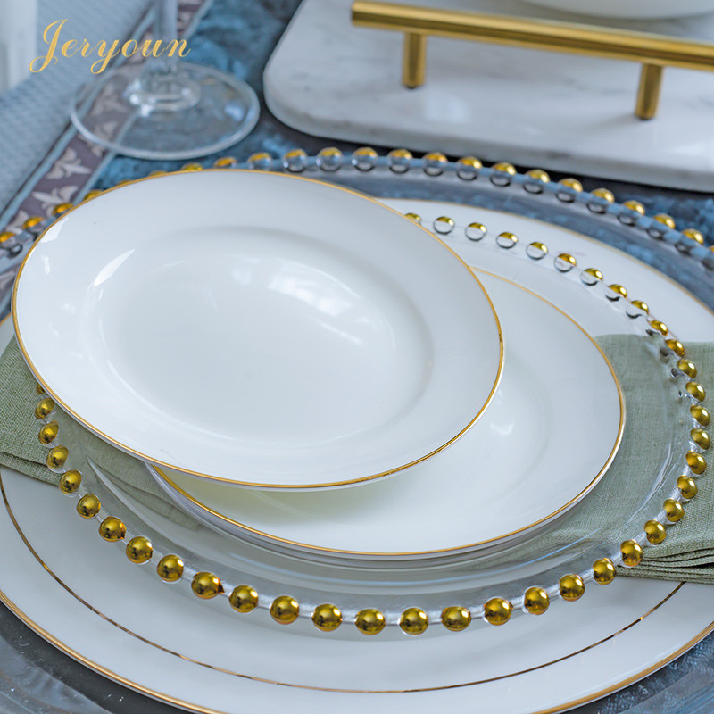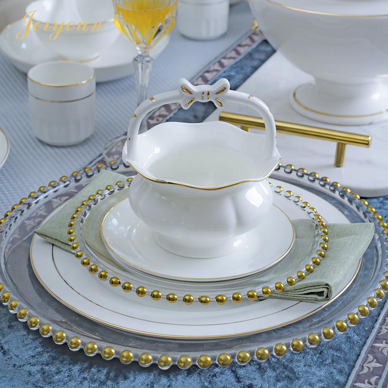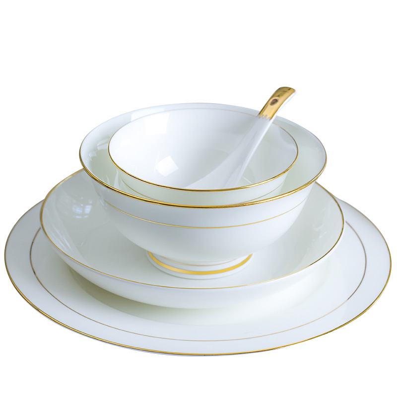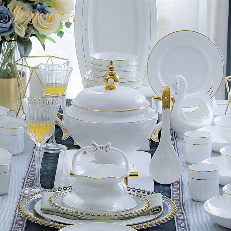 JERYOUN New Phnom Penh Bone China Dishes And Tableware Set Home Jingdezhen Bowls and Plates Golden Jade Full Hall High-end Light Luxury