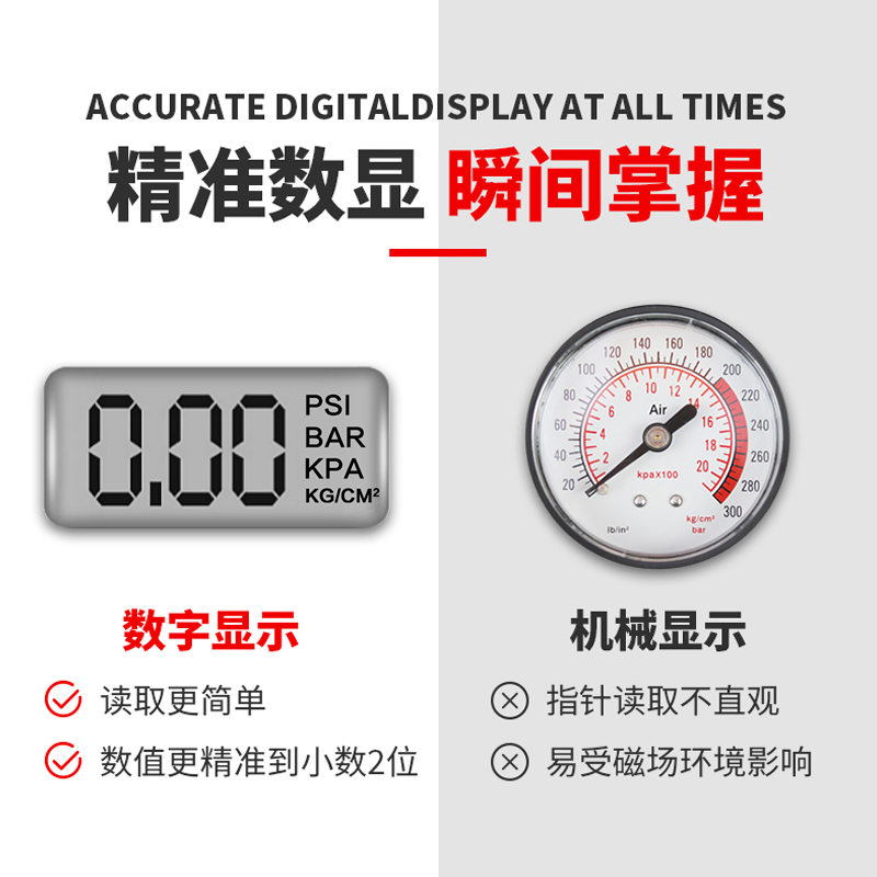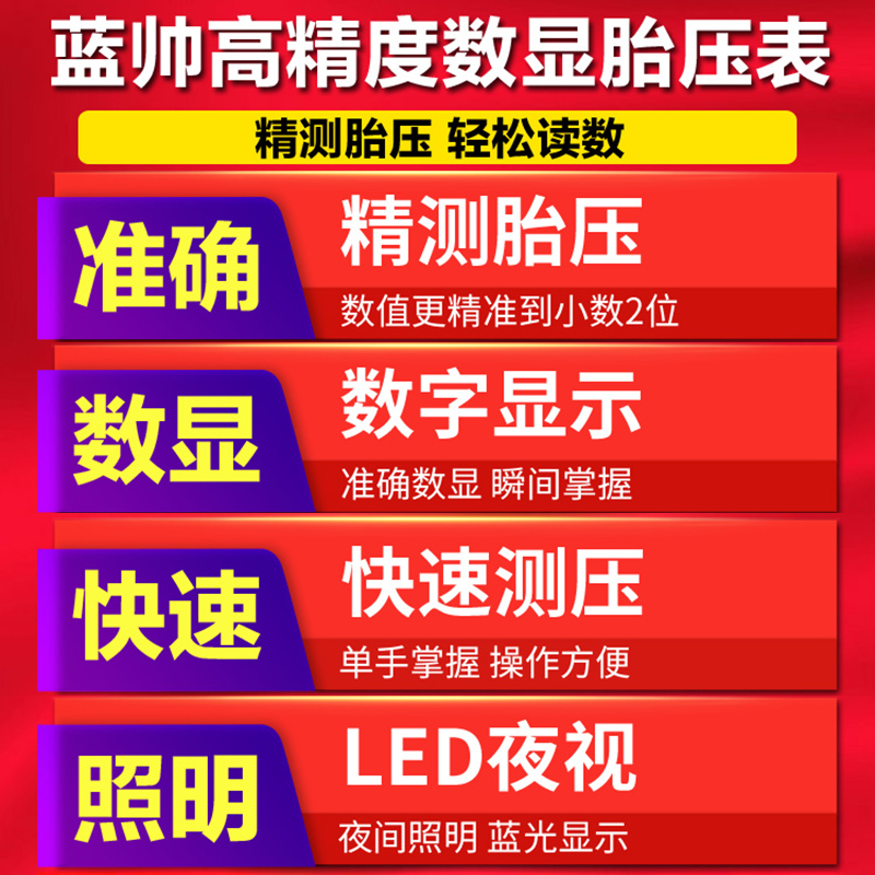 (1) Digital lengthened ★ hose Fine measuring tire pressure (2) Standard ★ night lighting Fine tire pressure measurement