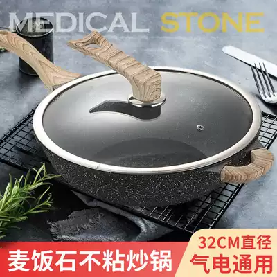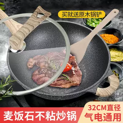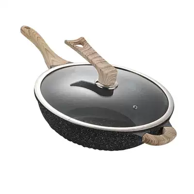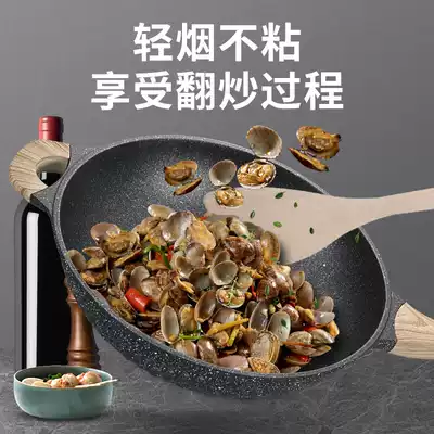Wood grain Maifan stone wok Smoke-free non-stick wood grain handle Die-casting induction cooker Gas stove Universal wok Stainless steel