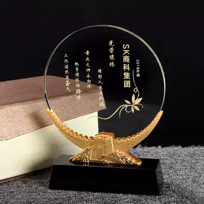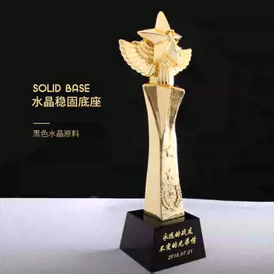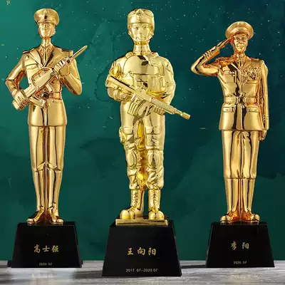 Resin trophy custom creative design lettering small golden man honor high-end solid wood veterans trophy medal custom