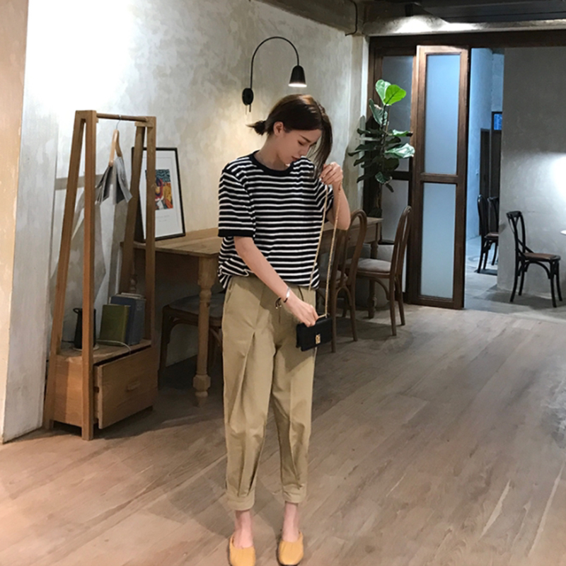 Black and white striped T-shirt with its color pants S black and white striped T-shirt with its color pants M black and white striped T-shirt card its color pants L black and white striped T-shirt with its color pants XL