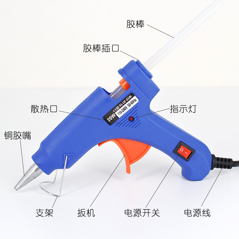 Hot melt glue gun Manual DIY hot melt glue gun glue stick 20W with light with switch Hot melt glue gun glue gun