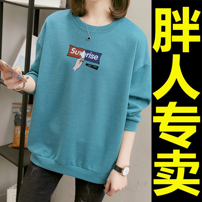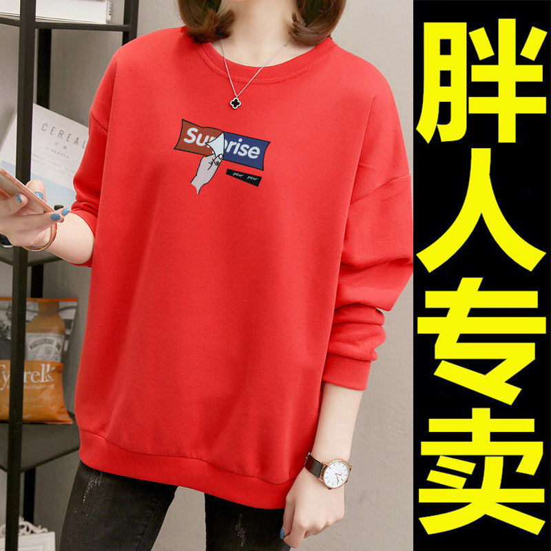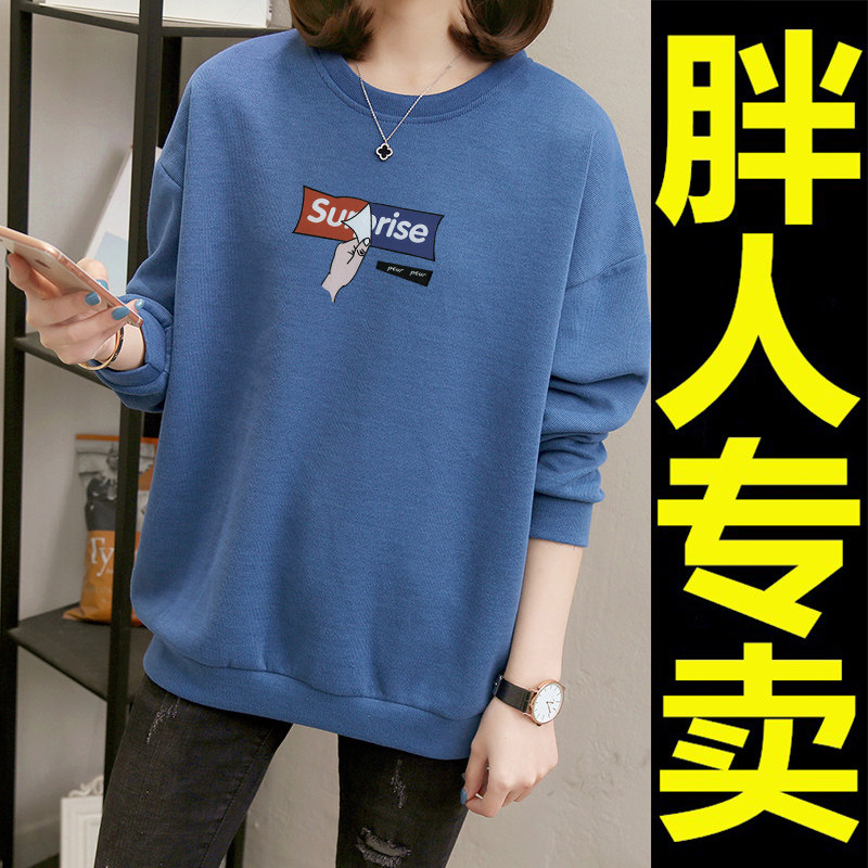 Spring and autumn pure cotton new Korean version bf200 catties large size loose long-sleeved thick cotton T women's coat all-match pullover top trendy