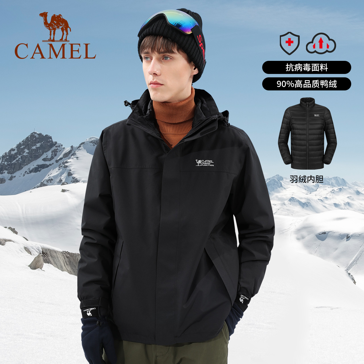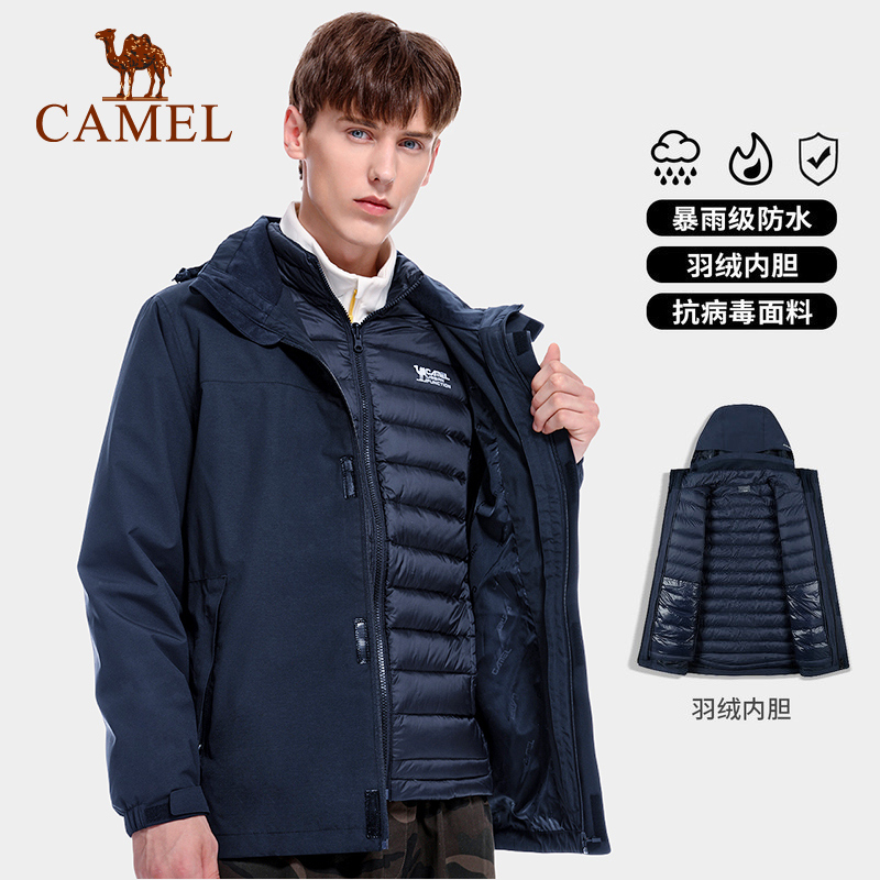 Camel down stormtrooper men's and women's anti-virus jacket hiking suit three-in-one detachable two-piece set of outdoor clothing
