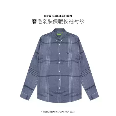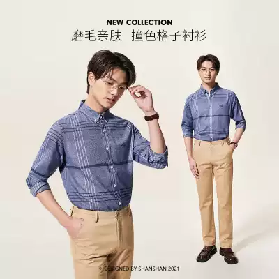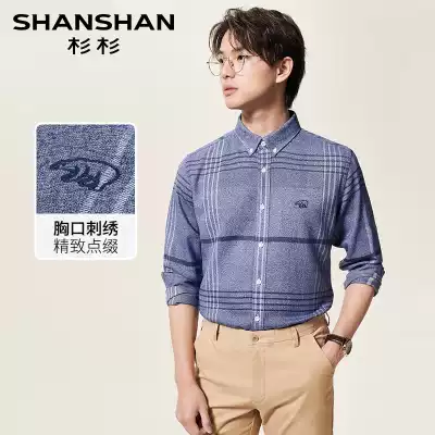 SHANSHAN SHANSHAN Men's 2021 Spring/Summer Long Sleeve Pointed Neck Shirt Men's Fashion Casual Check Top