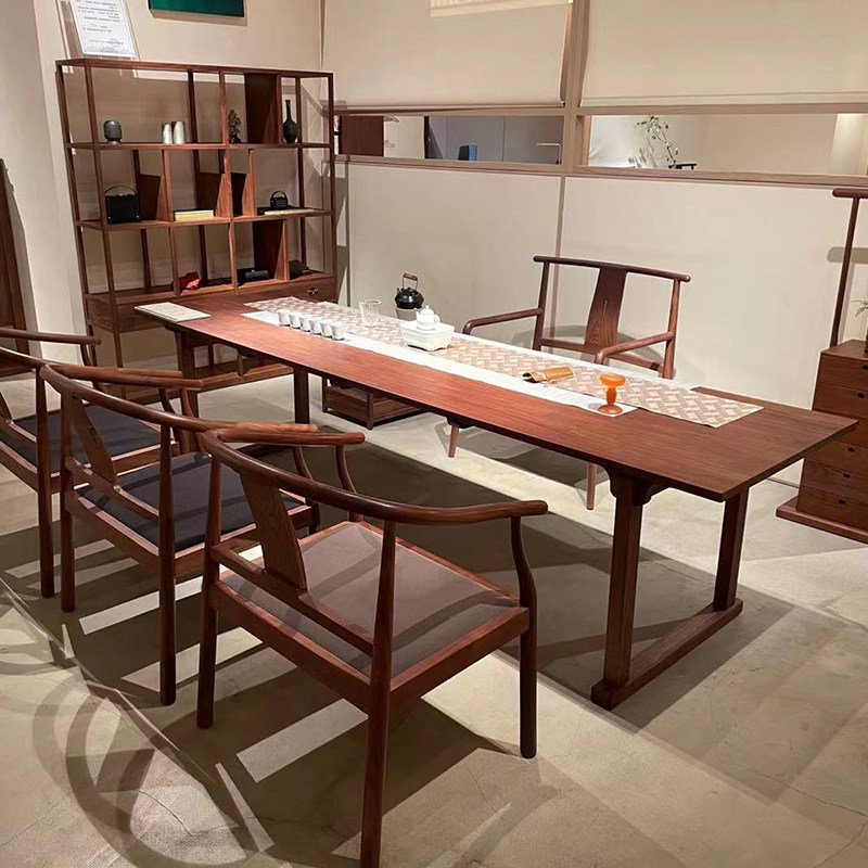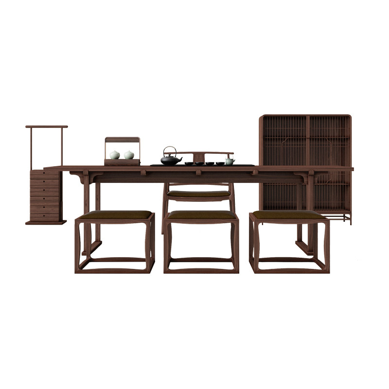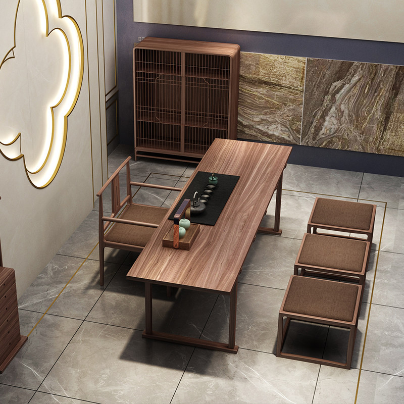New Chinese style solid wood tea table and chair combination modern minimalist black walnut kung fu tea table Zen teahouse tea room furniture