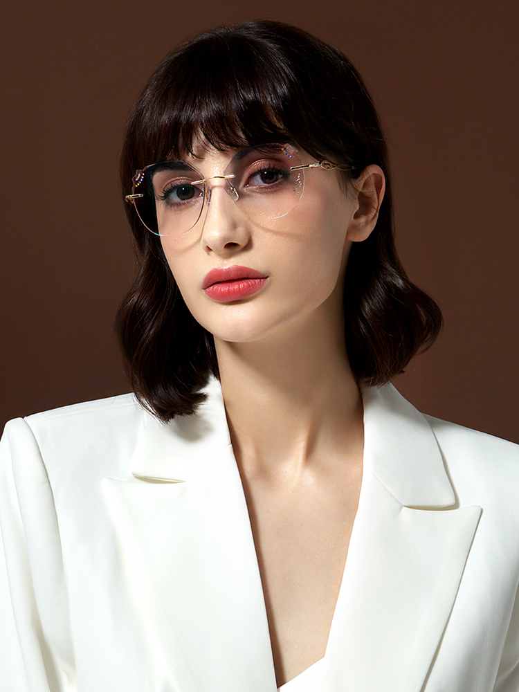 Box without frame Diamonds cut edge glasses Women can fit myopia with degree finished fashion inlaid drill cut one thousand Birds 8099