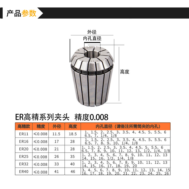 ER11-4ER8-(1~2 5mm)ER8-(3~5mm)ER11-(1~2 5mm)ER11-(3~7mm)ER16