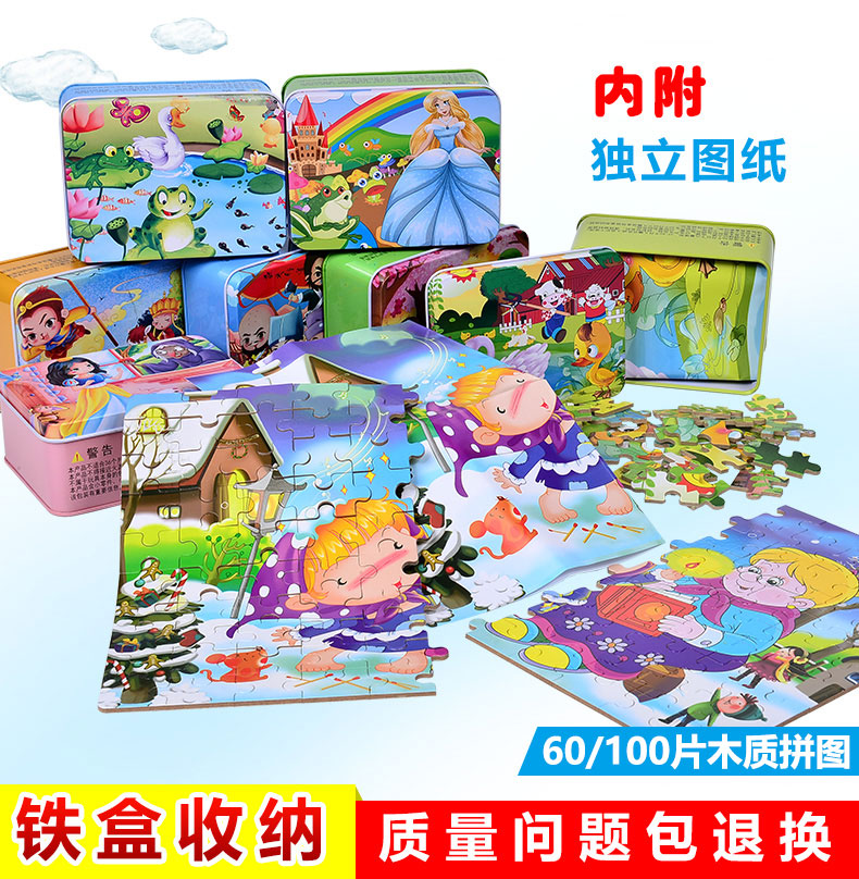60 pieces of iron box jigsaw puzzle package three (total of 4 boxes) 100 pieces of iron case puzzle package three (total 4 boxes) 60 pieces of iron box jigsaw puzzle package 7 (total 4 boxes) 100 pieces of iron box jigsaw puzzle package II