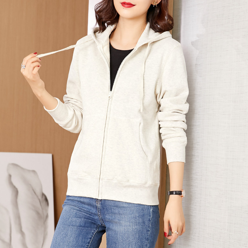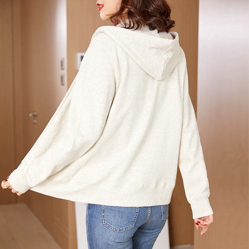 Zipper sweater women's 2021 spring and autumn new sports casual loose Korean version long-sleeved pure cotton hooded cardigan jacket