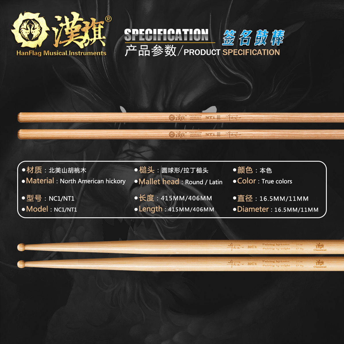 Hanqi Classical Small Army Drummer Hammer Day Bali Gavel Big Bull signature Drum Stick NC-1 NT-1