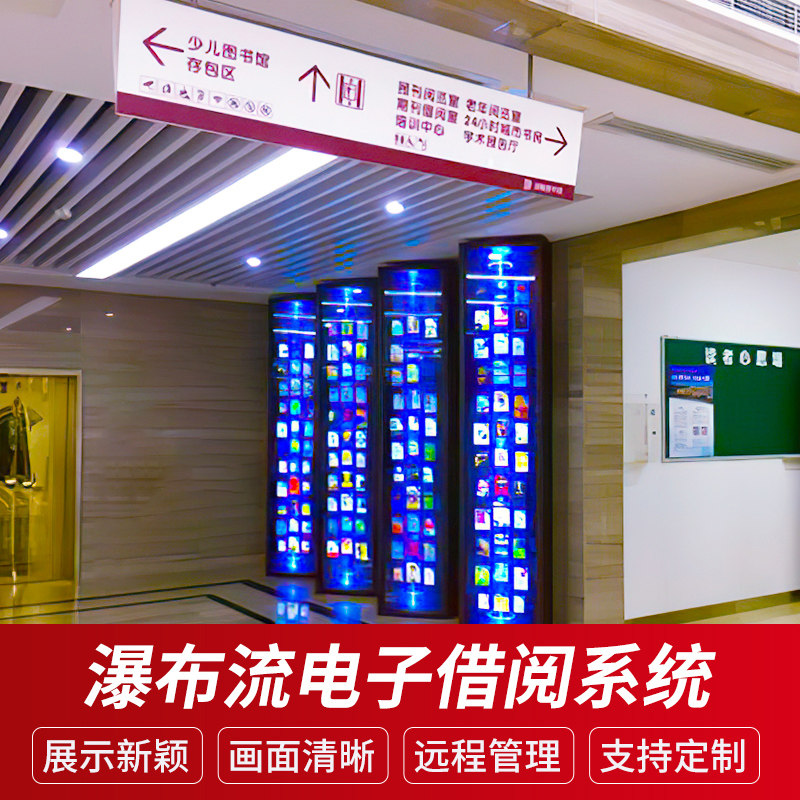 Read newspaper magazine period book borrowing and reading electromechanical subbook borrowing system 3D digital waterfall stream information interaction column