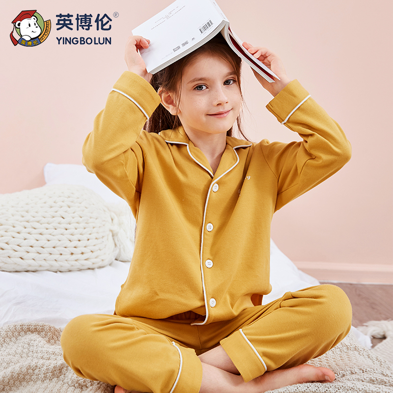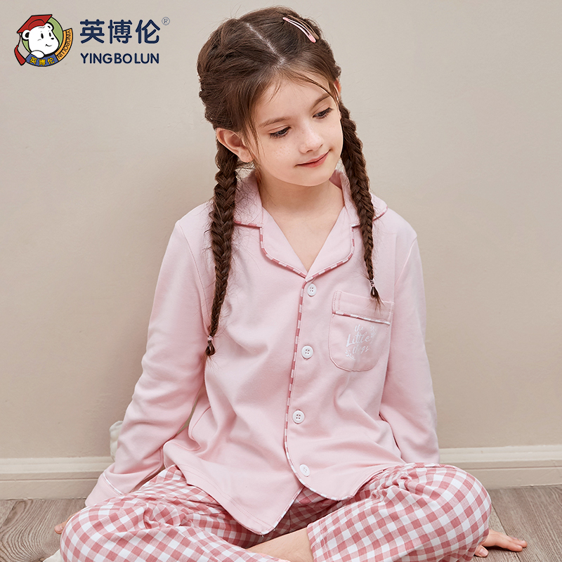 Two-piece sets of girls in the spring and autumn girl's pajamas shells for children in long sleeve home suit in the English Bolognan