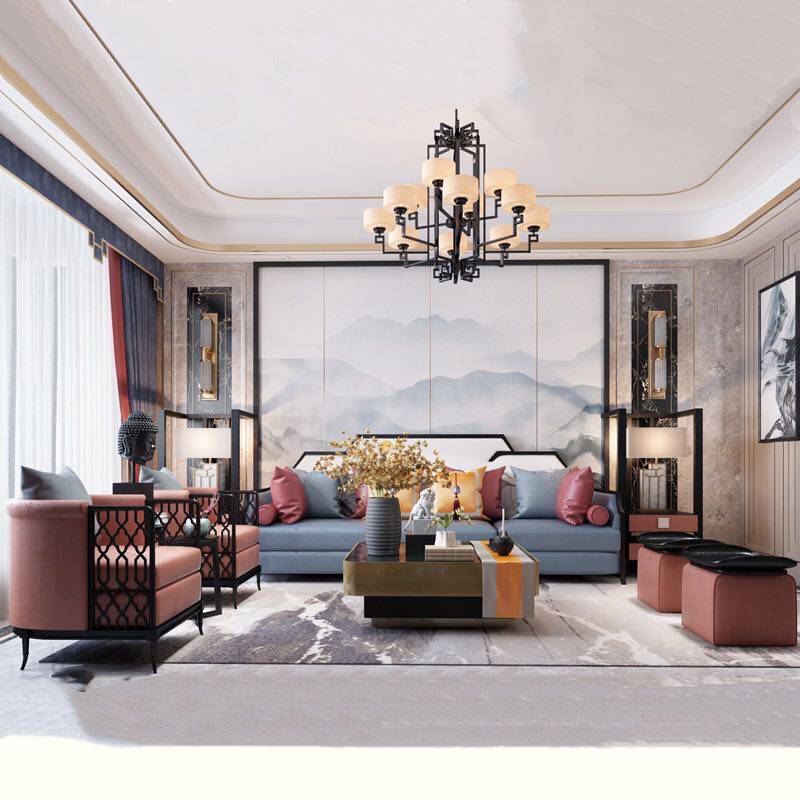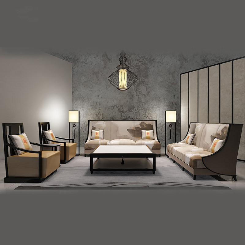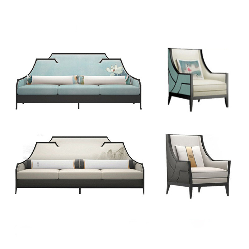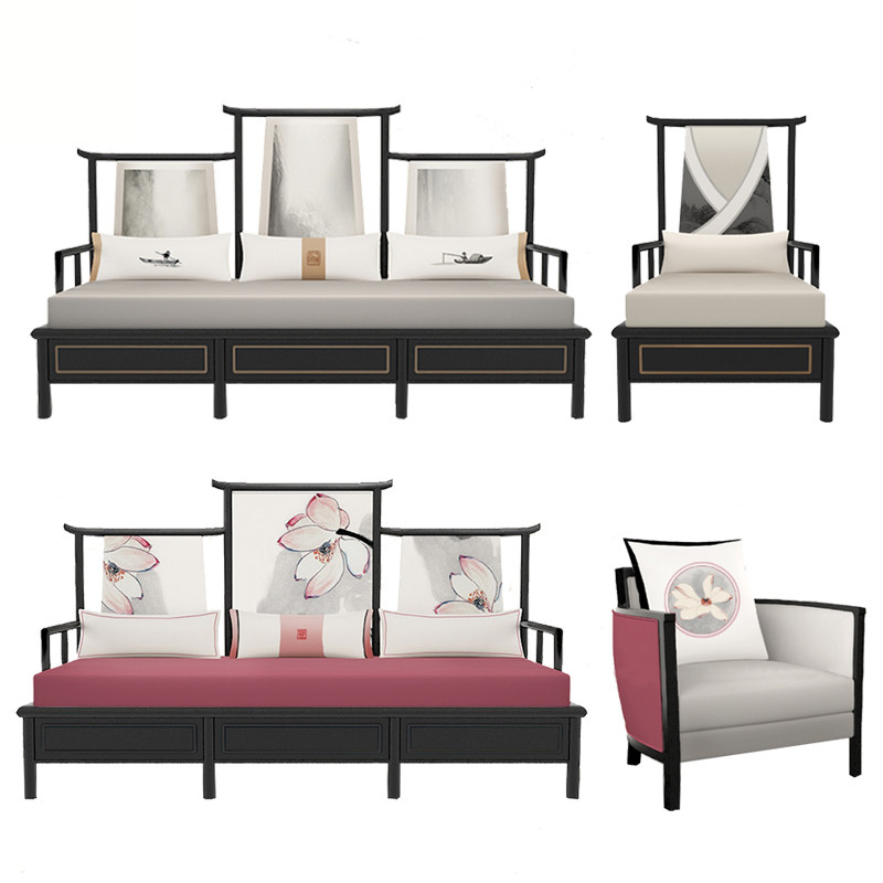 New Chinese style solid wood fabric sofa simple national tide Chinese style ancient style Zen beauty salon tea house homestay furniture