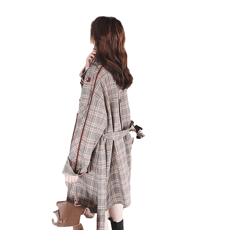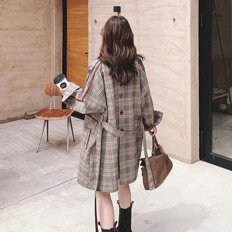 Lecea Alice plaid coat women's 2022 Korean version loose retro small high school long windbreaker