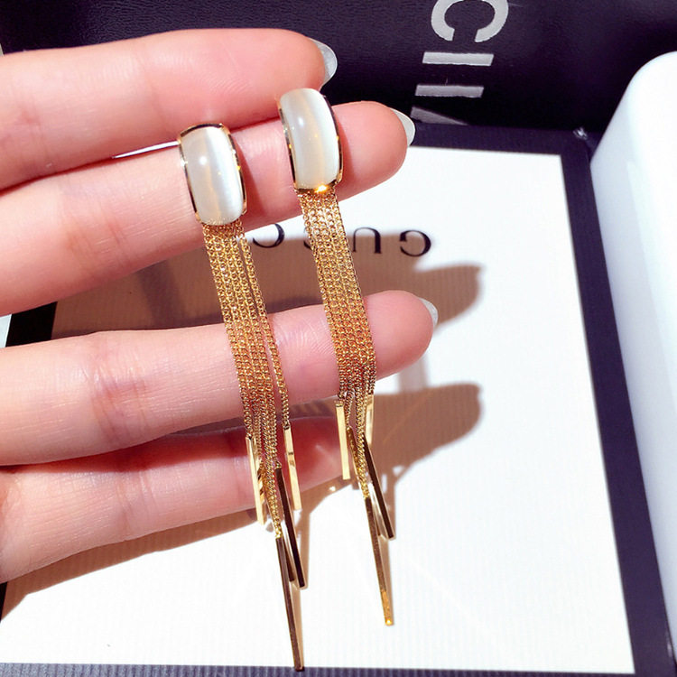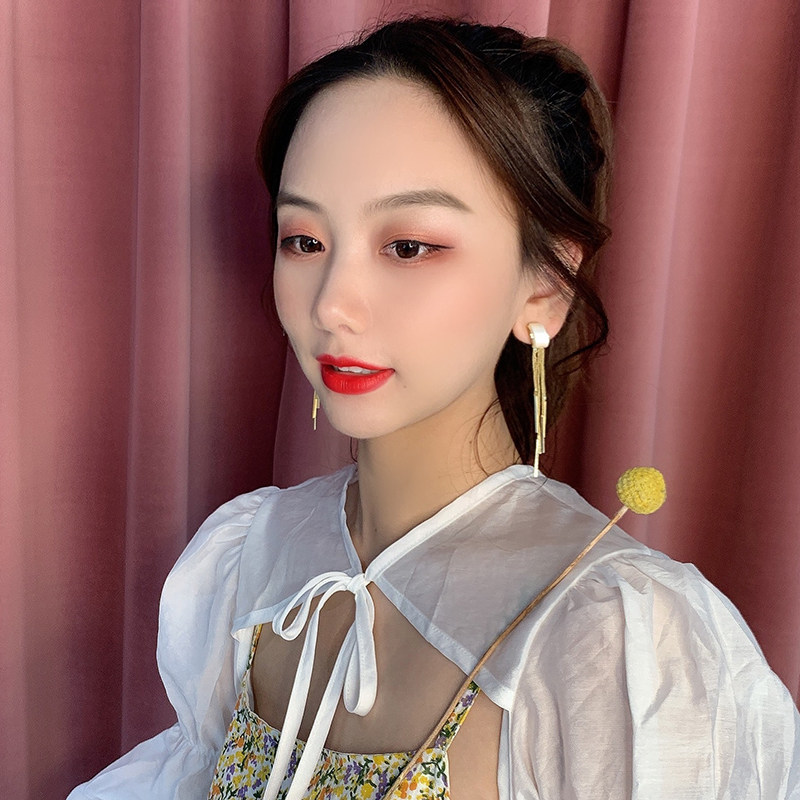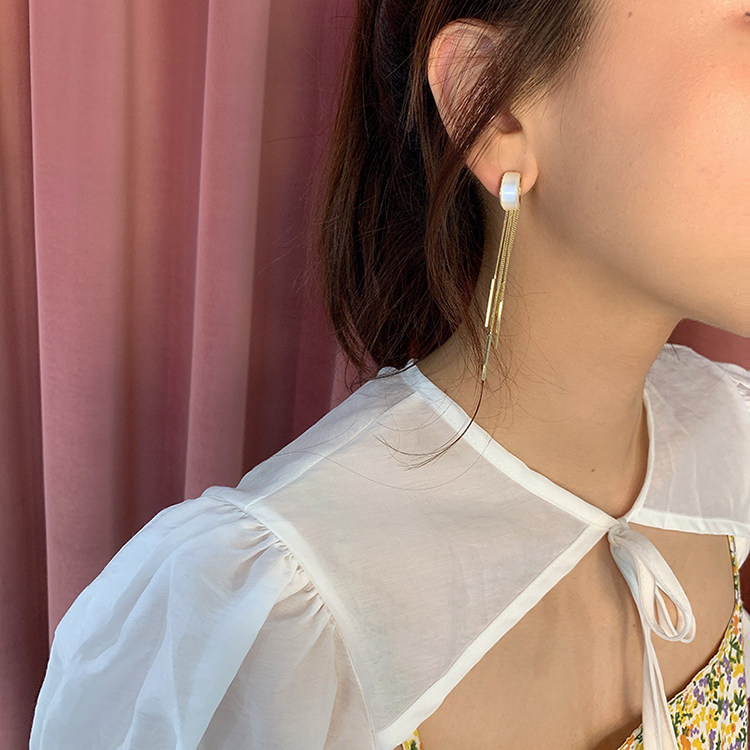 Korean version 925 silver needle small crowdsourced long version symmetrical flow suearrings personality 100 hitch superior sense shell ear-pin earring