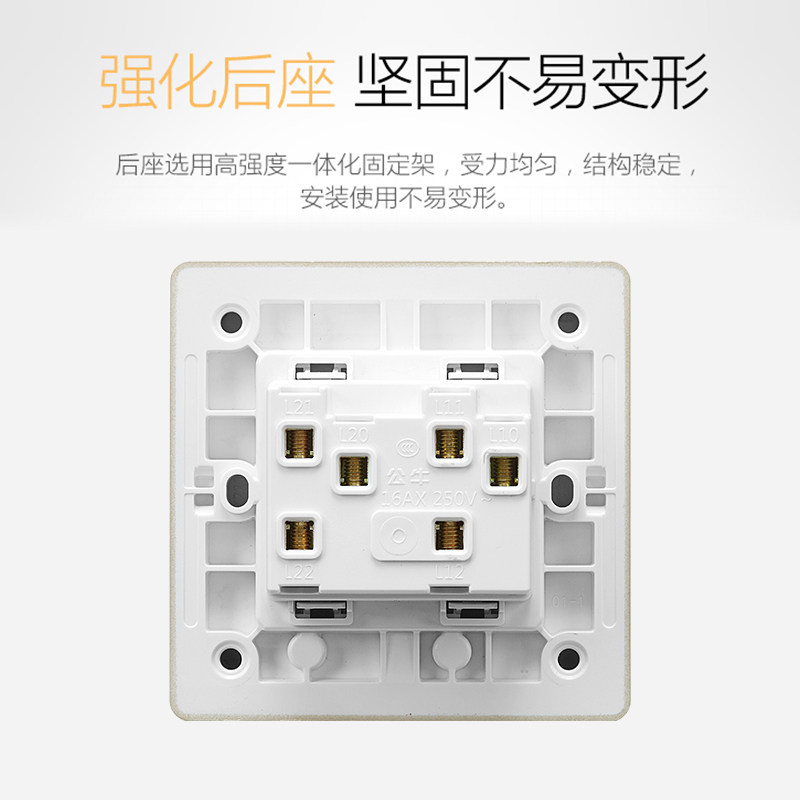 Bull switch socket double control switch home 86 type double control switch double open double control switch G12 gold