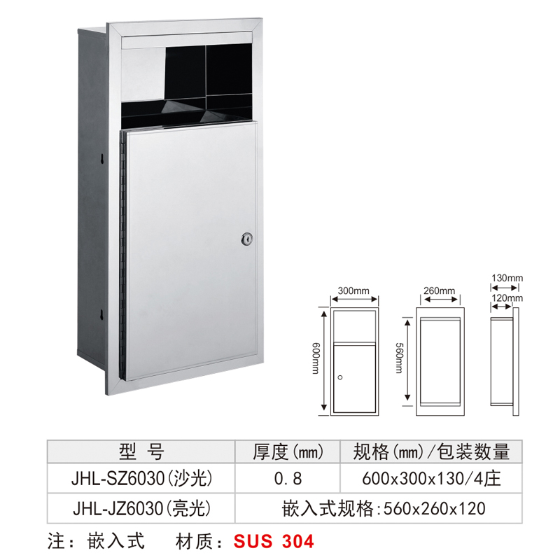 304 stainless steel recessed hide bin mall Hotel Makeup room Entrance Wall Concealed rubbish bins