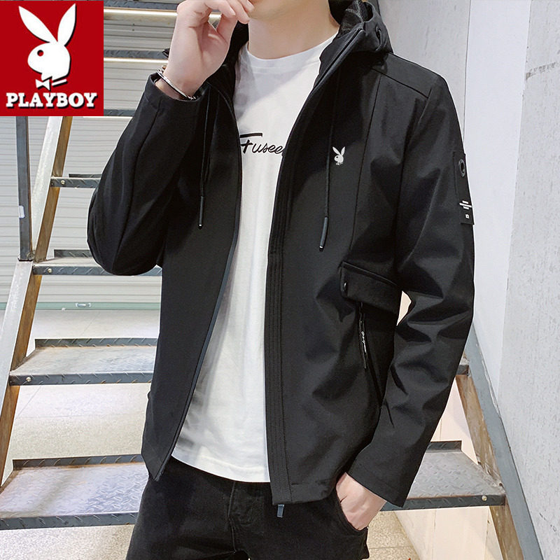 Playboy jacket men's hooded new handsome autumn trend casual all-match large size top autumn clothes