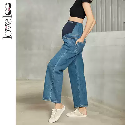 loveloc pregnant women wide leg pants jeans pregnant women autumn and winter wear trousers straight tube bottoming loose big size Winter