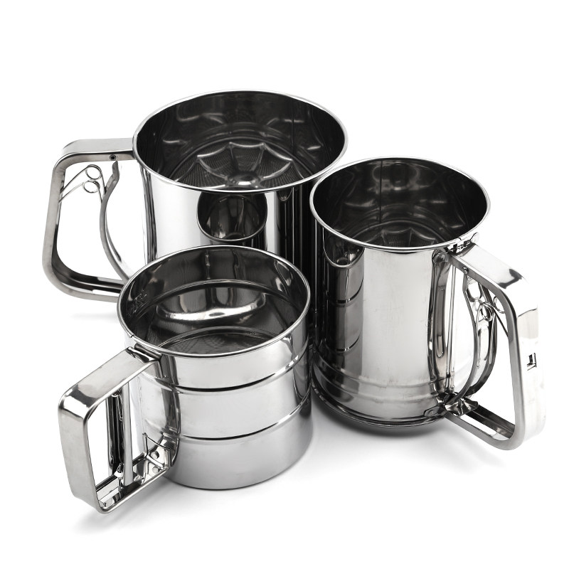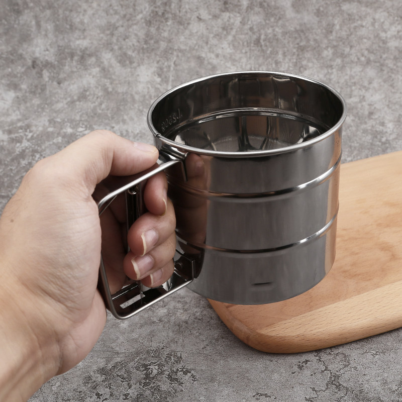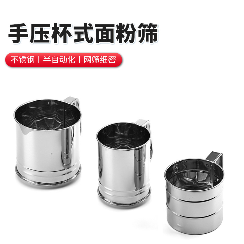 Stainless steel flour sieve sieve semi-automatic hand-held flour sieve kitchen baking tool cup powdered sugar sieve