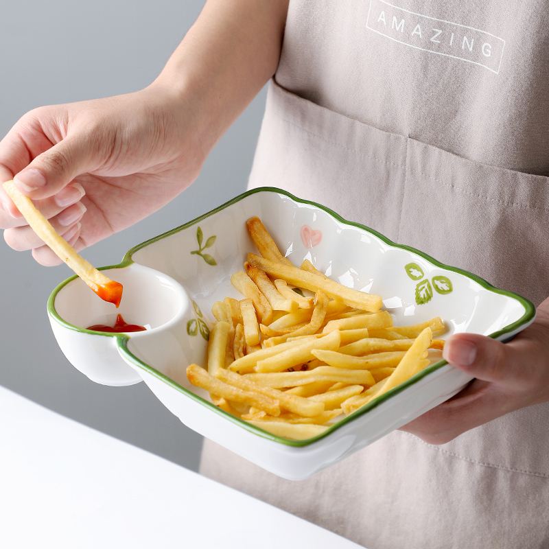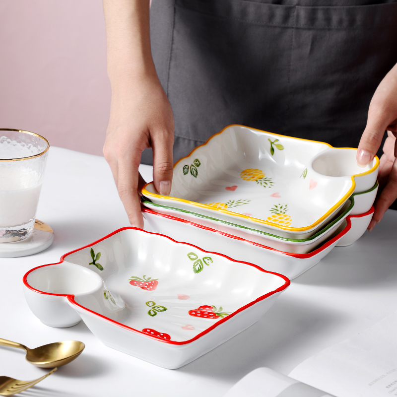 Dumpling plate home creative with vinegar plate integrated dinner plate tableware net red set ceramic breakfast plate children's plate