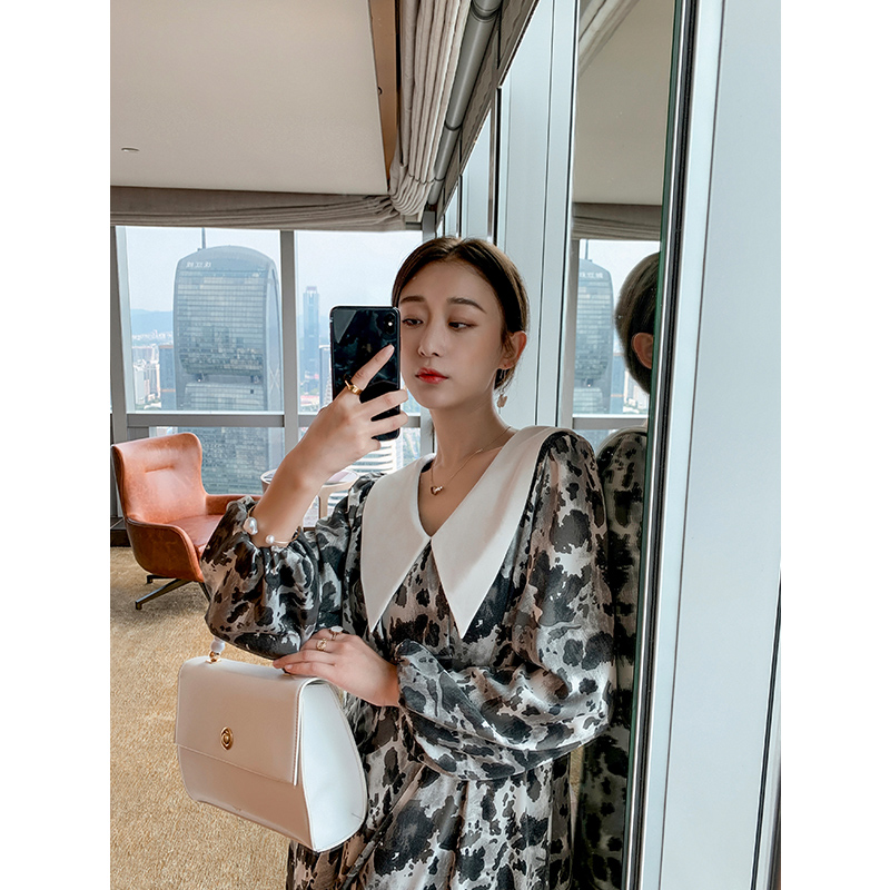 Doll-neck dress high-end big name 2020 early autumn French floral small fragrance ladies wind waist and thin temperament