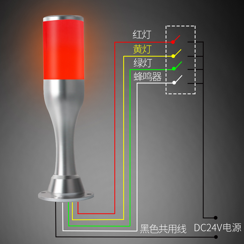 24V everbright straight arm 1 floor 3 color large buzzer 24V everbright straight arm 3 layers 3 color large buzzer Contact customer service matching voltage 12V 24V 220V