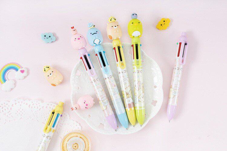 Biological ballpoint pen in the corner creative multifunctional students press fresh telescopic pen six-color ball pen