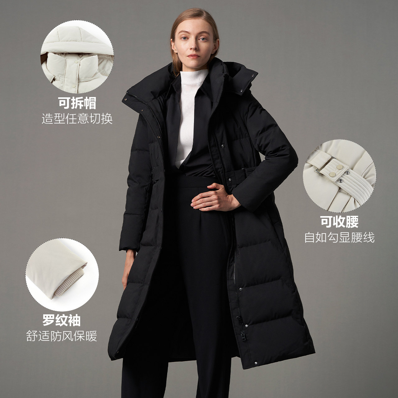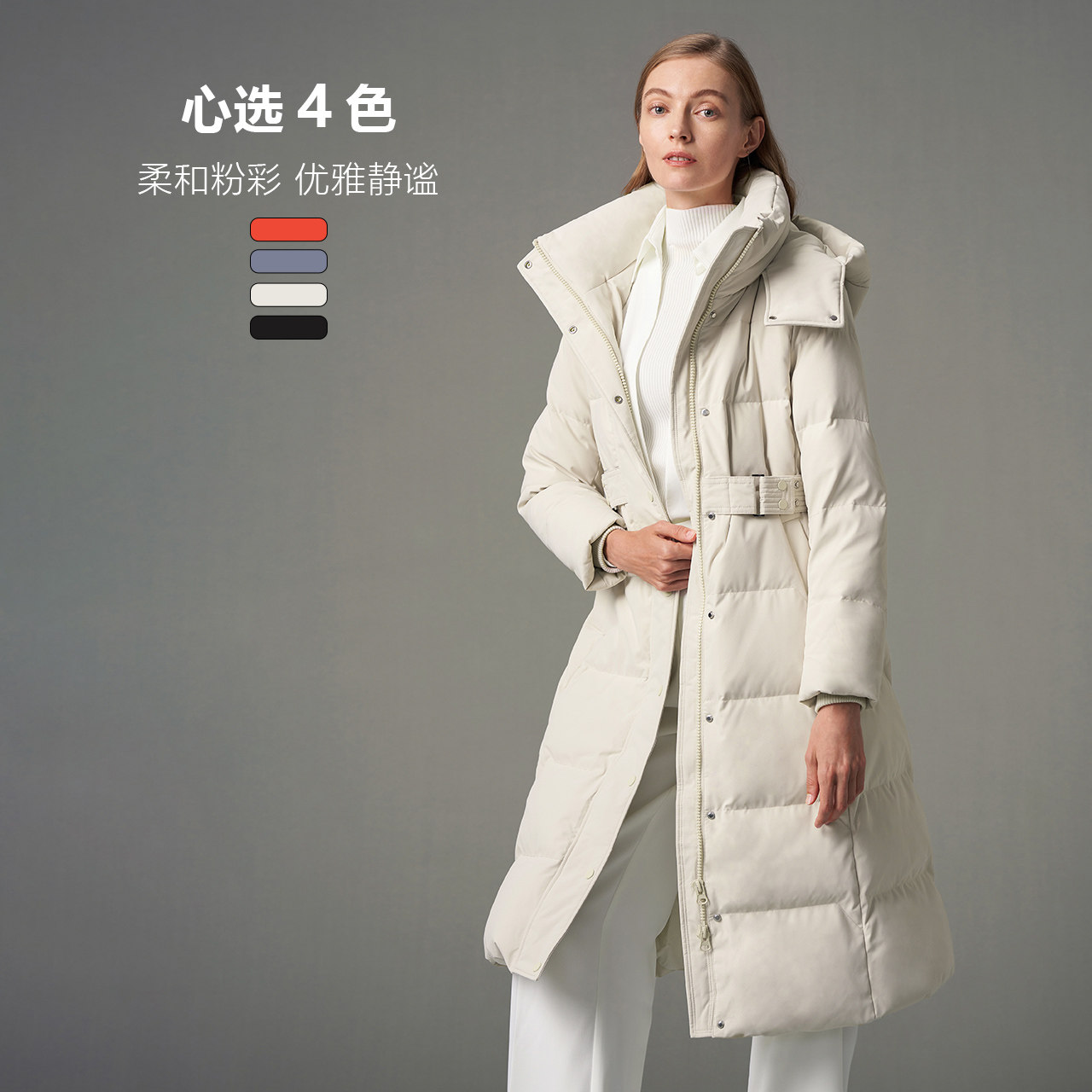 Bosideng women's down jacket long hooded belt waist slim slim comfortable down jacket B00145172
