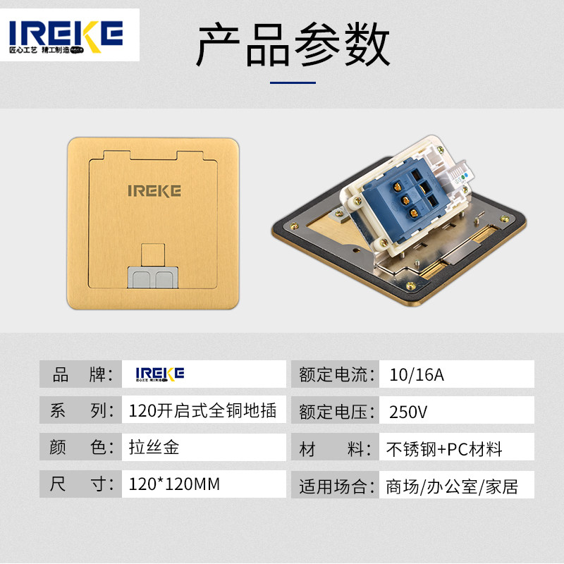 IREKE All copper waterproof open side plug porous ground socket with network audio HDMI multimedia ground socket