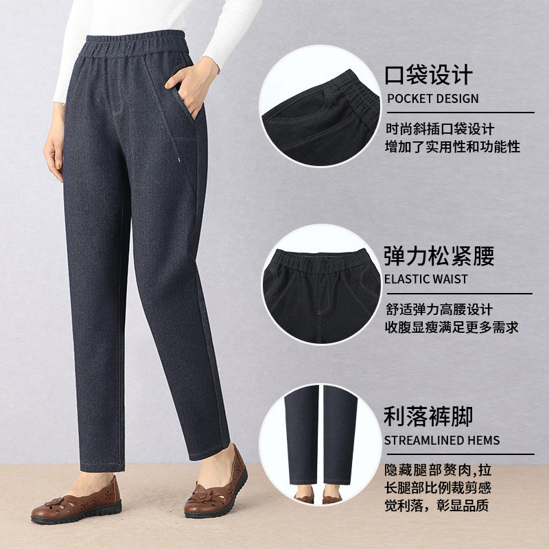 Middle-aged autumn and winter mother pants spring and autumn without falling off loose waist high-waist elastic thickness loose radish pants